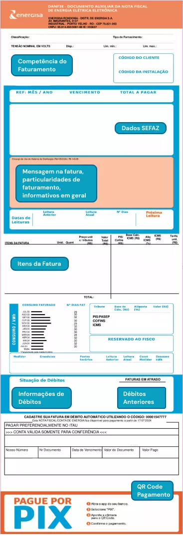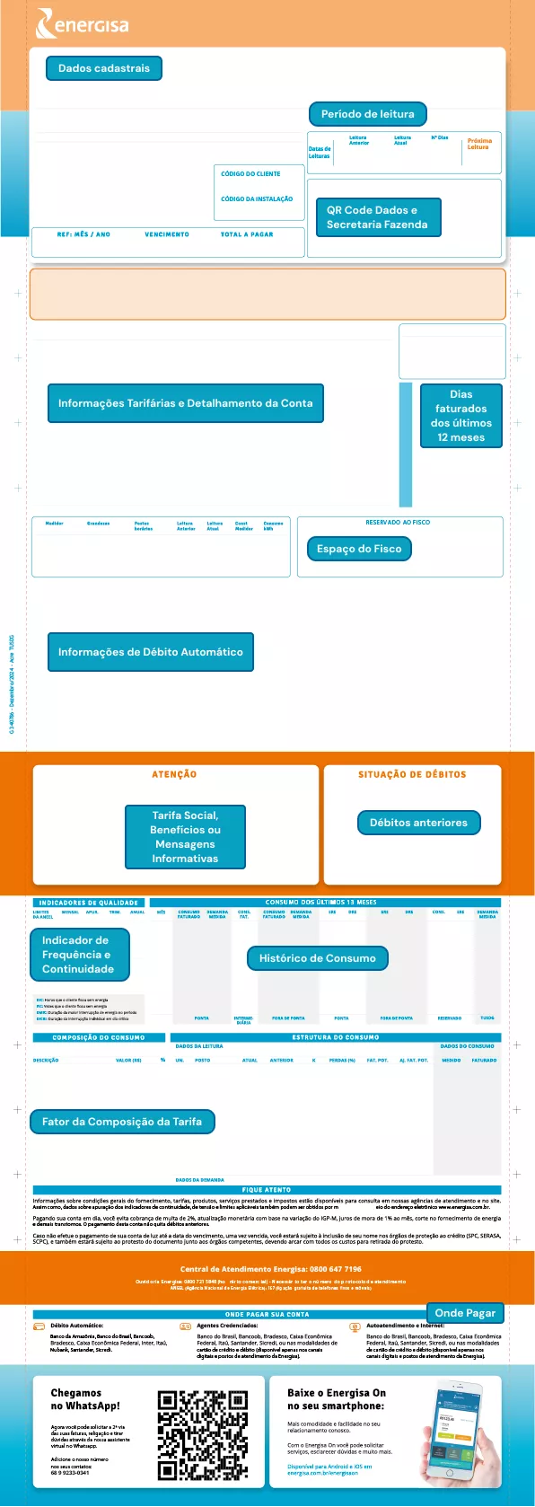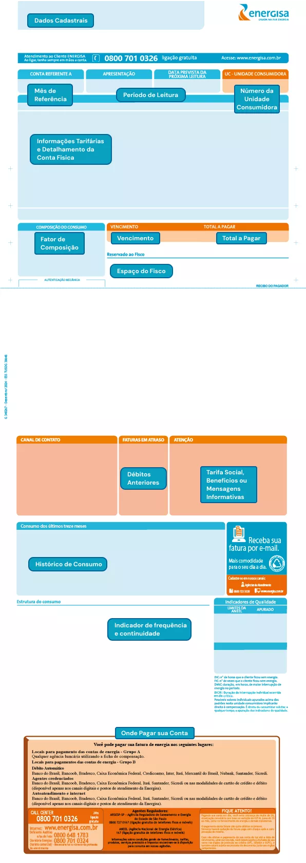nformações necessárias para o cliente realizar o pagamento da conta, seja de forma manual ou eletrônica.