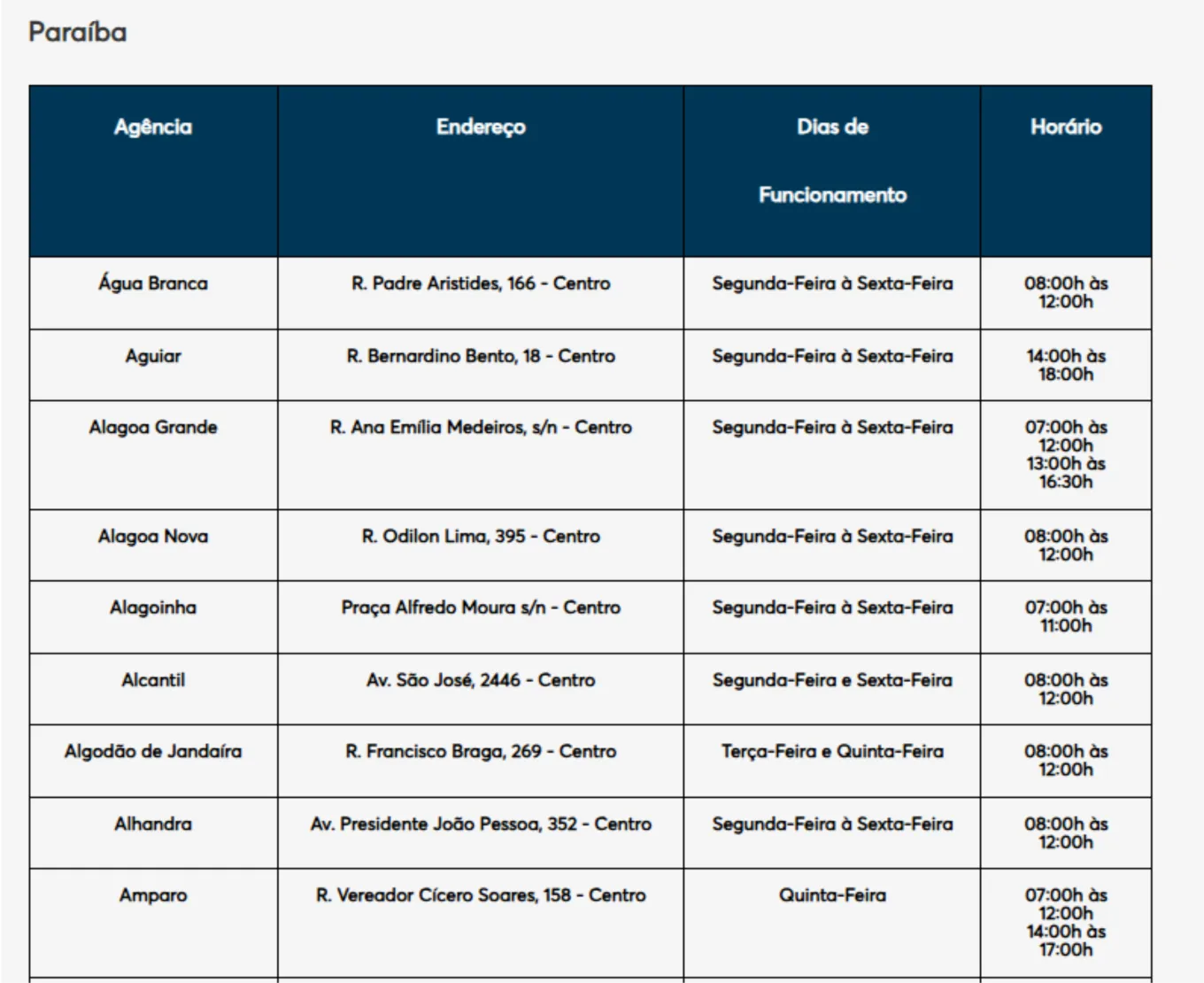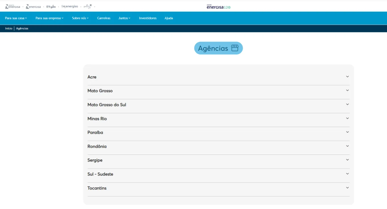 5 - Ao clicar no estado ou região, você verá uma tabela com todos os endereços e horários de funcionamento das agências de atendimento da Energisa localizadas na região escolhida.