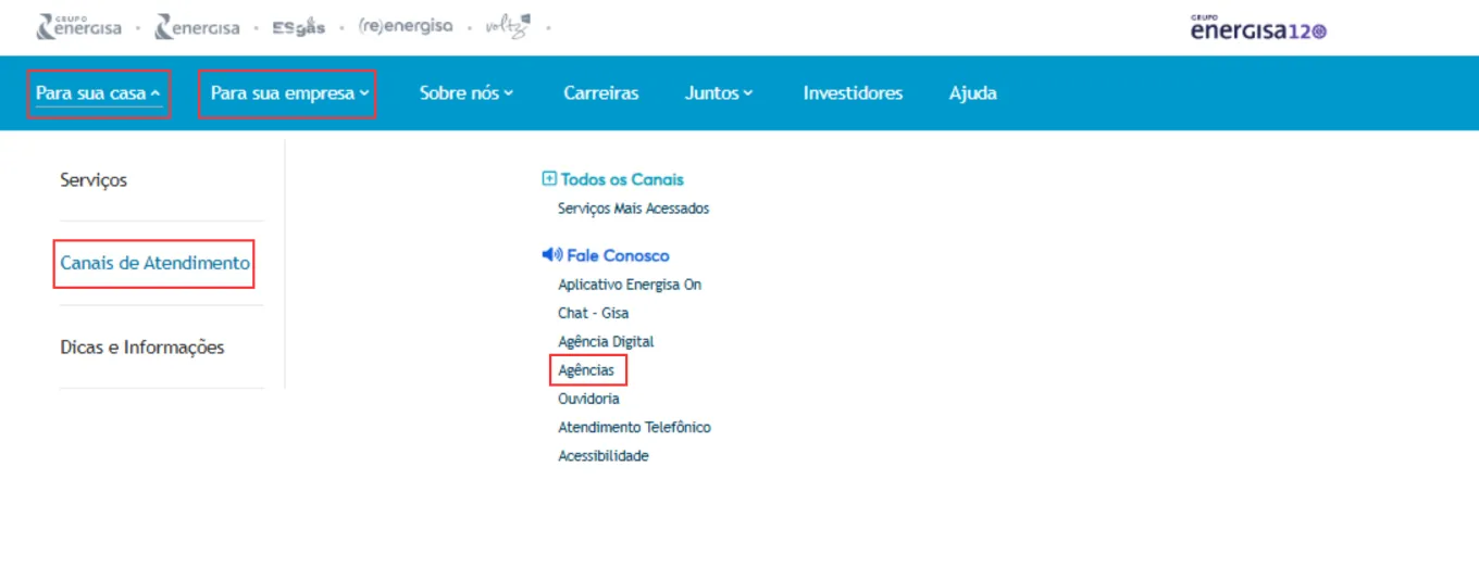 3 - Clique em "canais de atendimento" e depois em "agências".