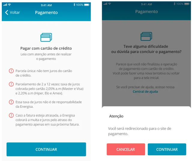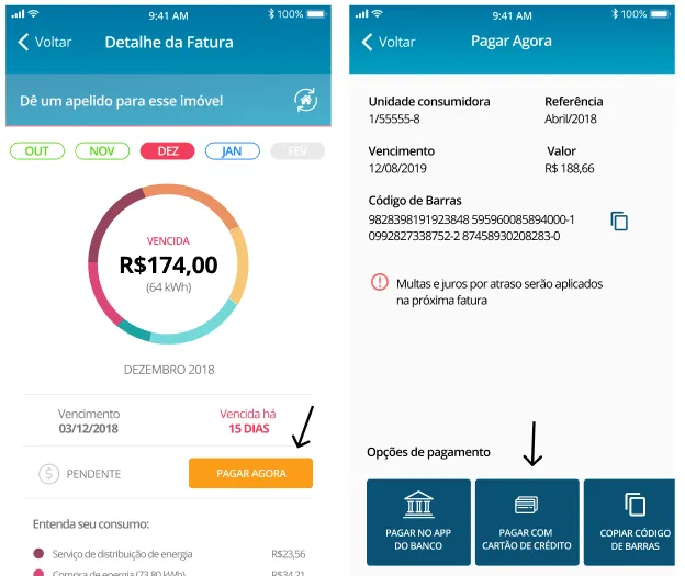 Disponibilizamos a opção de pagar a sua fatura com cartão de crédito, confira abaixo como realizar esse procedimento caso seja ofertado para você essa opção ao acessar o seu Energisa ON.
