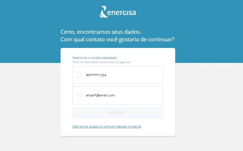 Se você não tem mais acesso aos contatos registrados, clique em “Não tenho acesso a nenhum desses números” para recuperar o seu acesso.