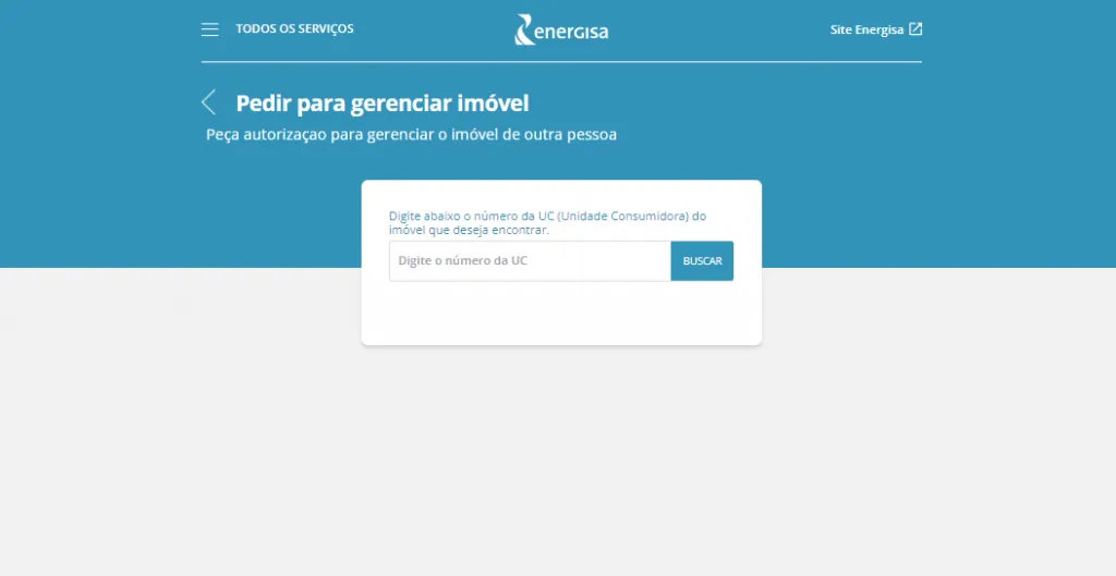 6. Em seguida, informe o código do cliente (antiga UC) para solicitar o gerenciamento de acesso. Se não souber essa informação, ela está disponível na sua conta de energia (no canto superior direito);