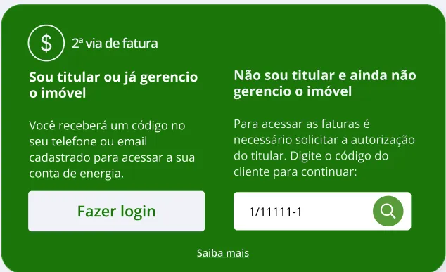 Para maior segurança e evitar fraudes, mudamos a forma que você acessa às faturas de pagamento. Agora, para vê-las, é necessário se identificar com o seu CPF e ser o titular da conta ou pessoa autorizada pelo titular.