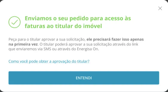 6. Logo após, você verá uma tela de confirmação em caso de sucesso e o titular receberá uma notificação com o link para a aprovação do acesso.